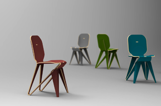 A plywoodchair made of two pices. NO glue and No screw is needed to bond both parts, they just clip into eachother.